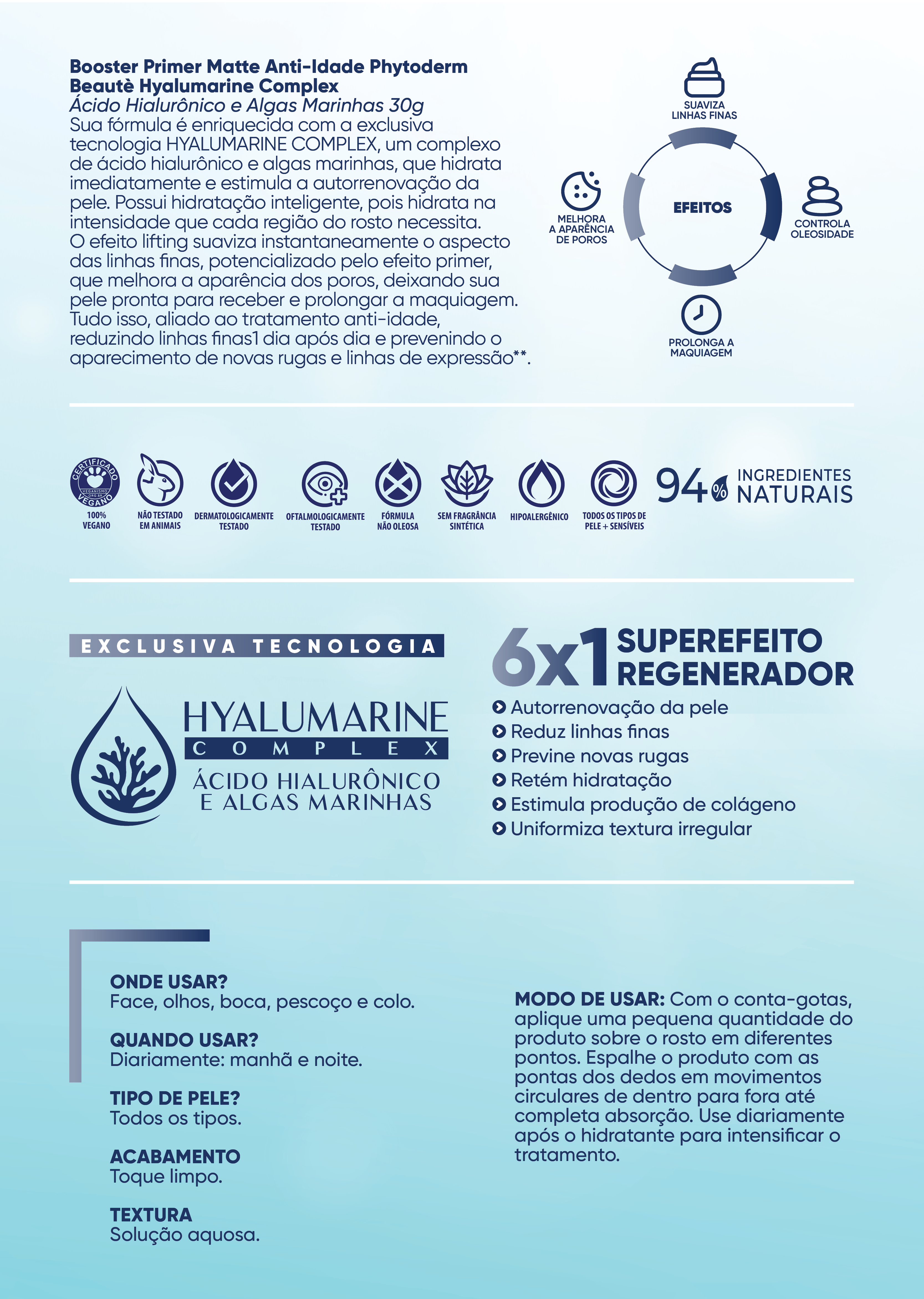 Booster Primer Matte Anti-Idade Phytoderm Beautè Hyalumarine Complex - Ácido Hialurônico e Algas Marinhas 30g